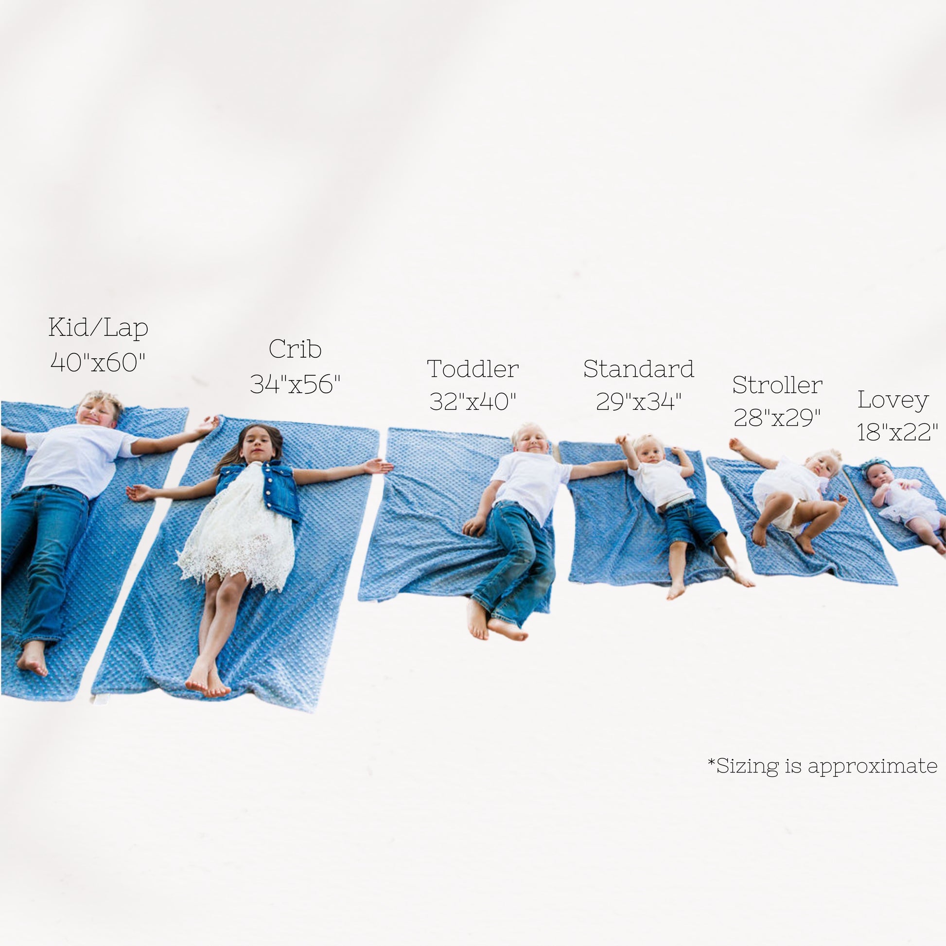 Please keep in mind that all sizes are approximate, as each item is custom cut and sewn to order. Font selection is limited to the list provided. If you enter a font that is not listed, we will make the blanket with the font pictured.