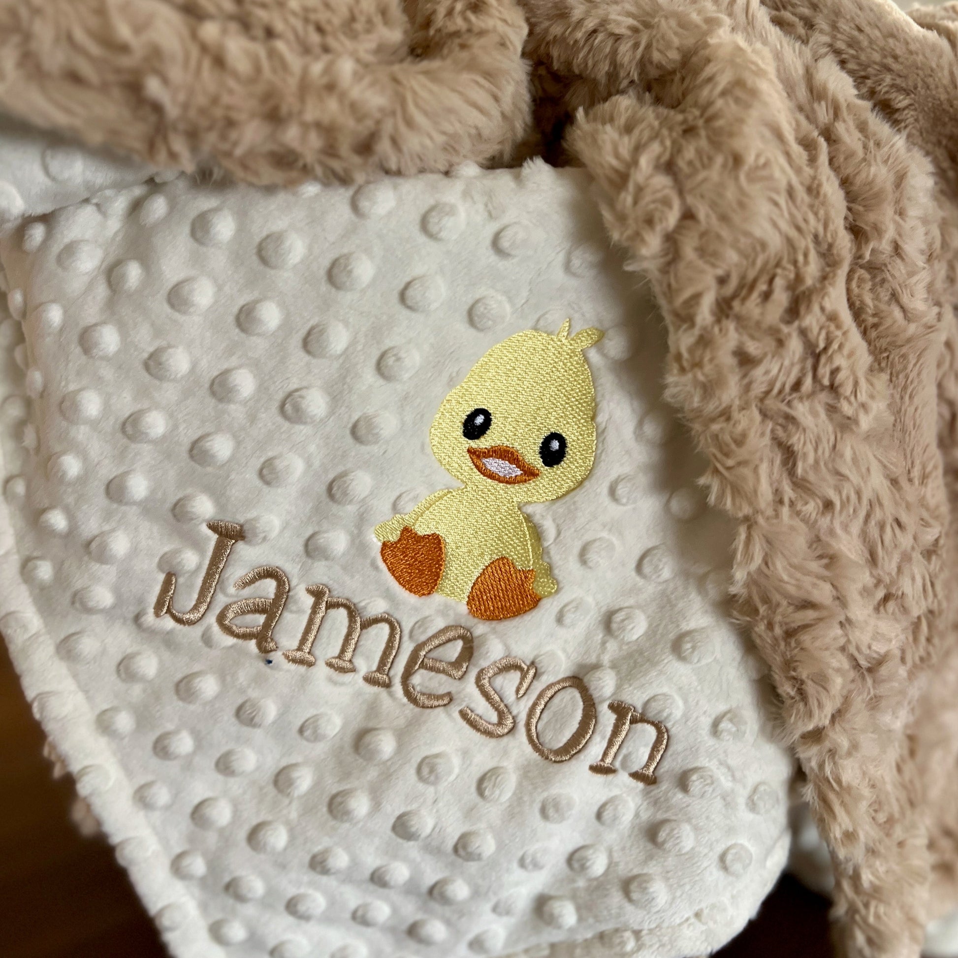 Embroidered Duck Minky Baby Blanket - Glacier - Personalized