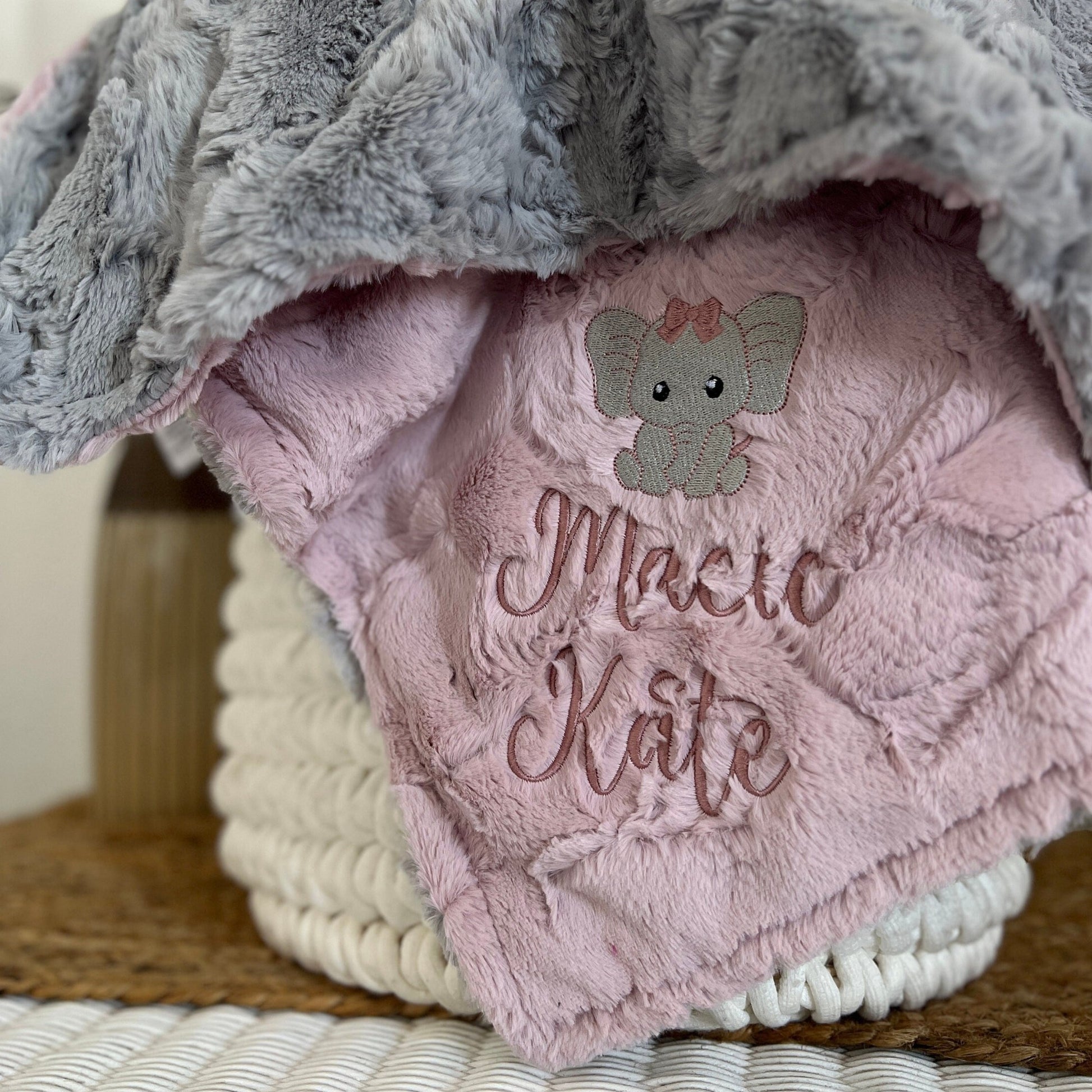 Embroidered Elephant Silver Glacier Minky Baby Blanket - Personalized