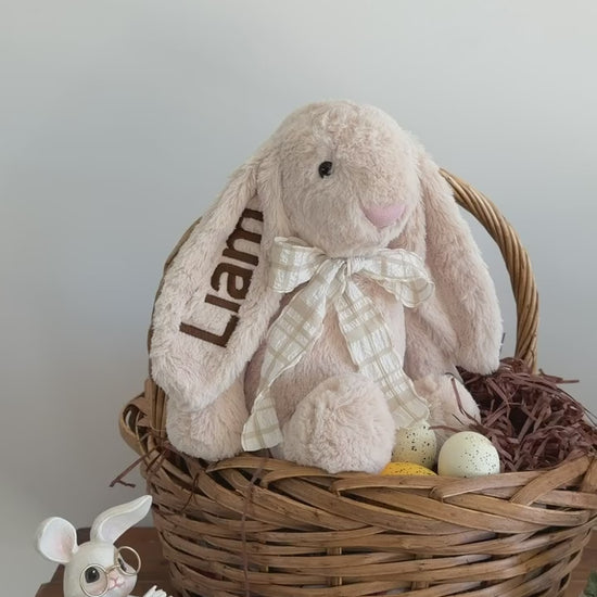 Large Latte Easter Bunny with Latte Gingham Scarf - Personalized