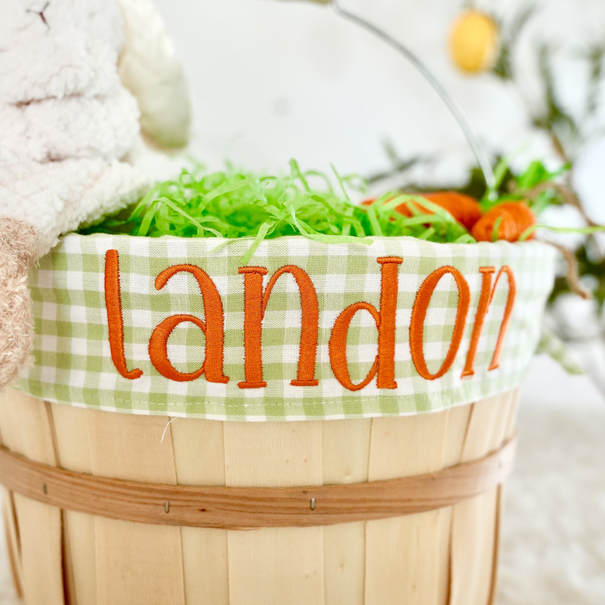 Make this Easter extra special with our beautifully crafted custom Easter basket! Measuring 10 1/2” wide x 7 3/4” high (and 14” with the handle up), this generously sized basket is perfect for filling with Easter goodies, gifts, and treats.