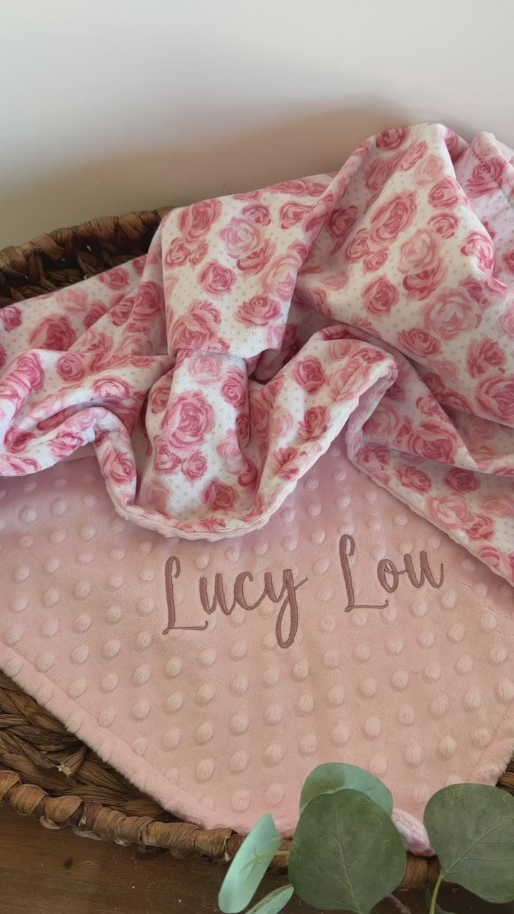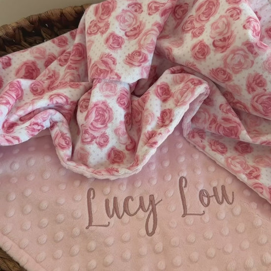 Personalized Pink Floral Minky Baby Blanket