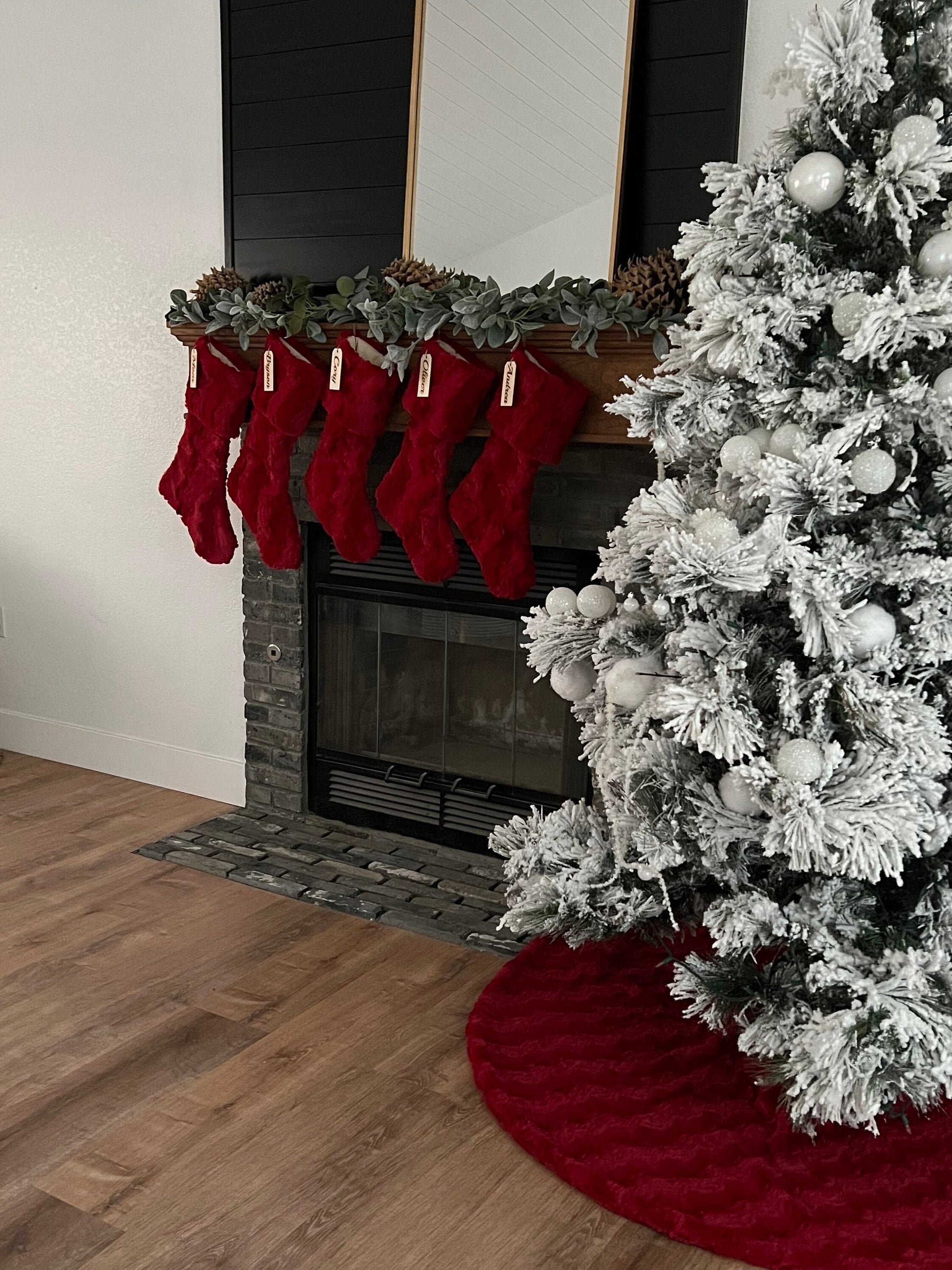 Prepare your mantel for Christmas festivities with our exquisite personalized Christmas stockings, skillfully crafted by hand. These stockings, made in the USA, are the perfect addition to your holiday decor. Please note that due to the handmade nature of our stockings, there may be slight variations in dimensions.