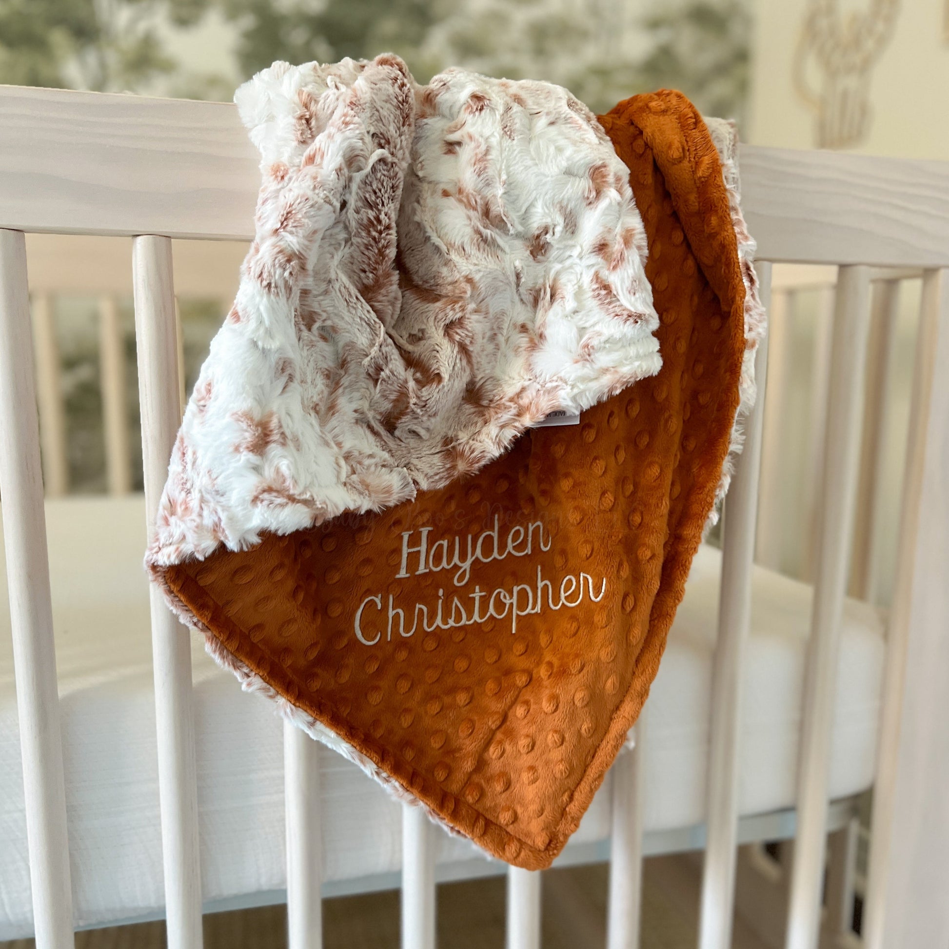Snow Owl Woodland Rust Minky Baby Blanket - Personalized